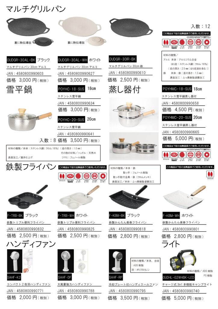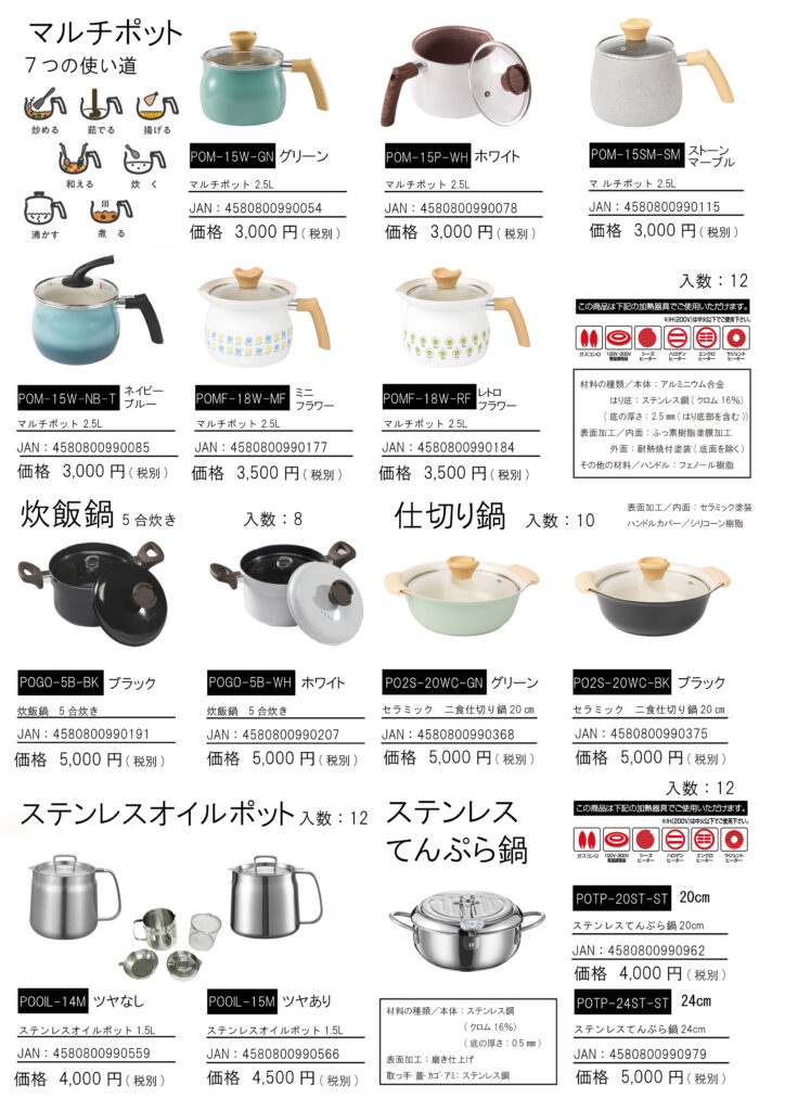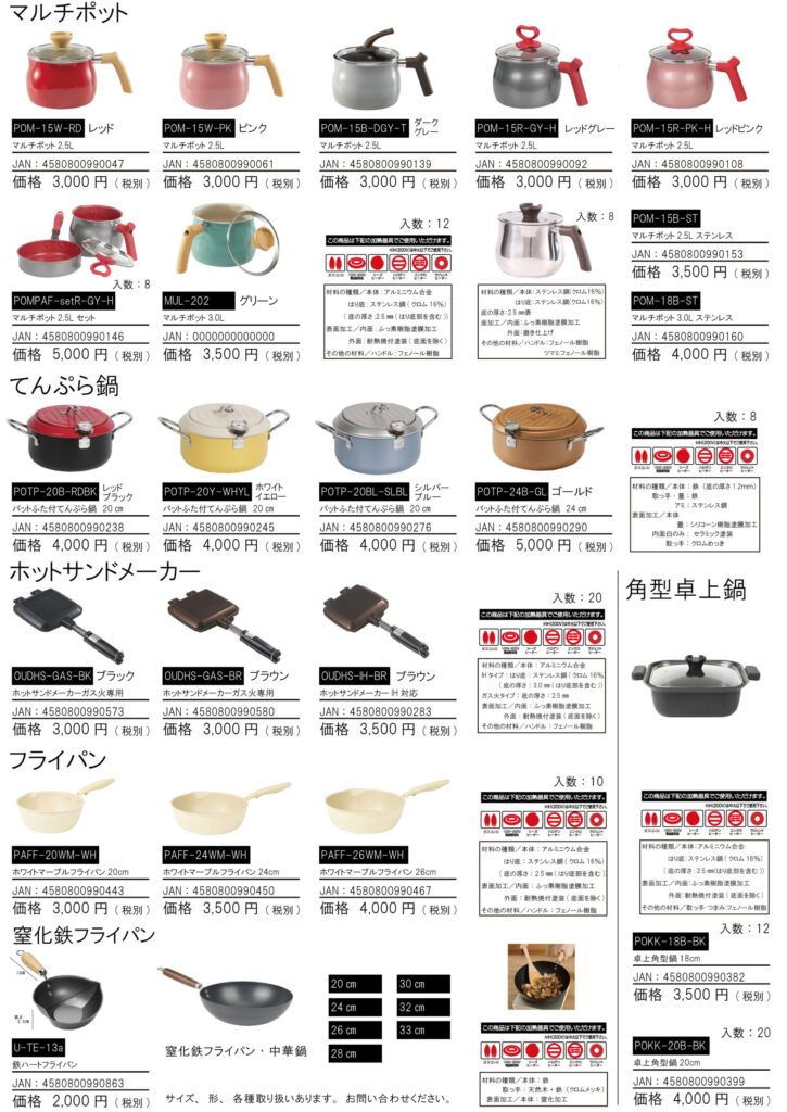 家庭用はもちろん、業務用調理器具、家庭雑貨など、幅広い商品をご紹介いたします。