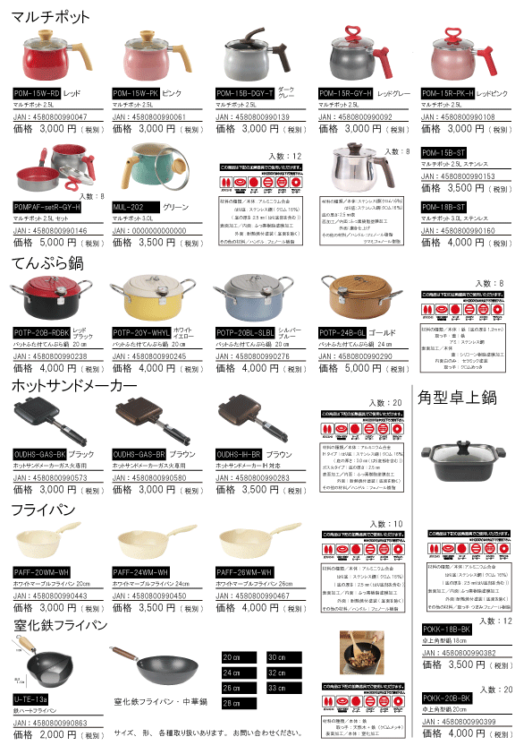 油切り蓋と温度計付きで、揚げ物が失敗しにくい便利な天ぷら鍋。家庭でも安心して揚げ物を楽しめます。カラー展開しています。