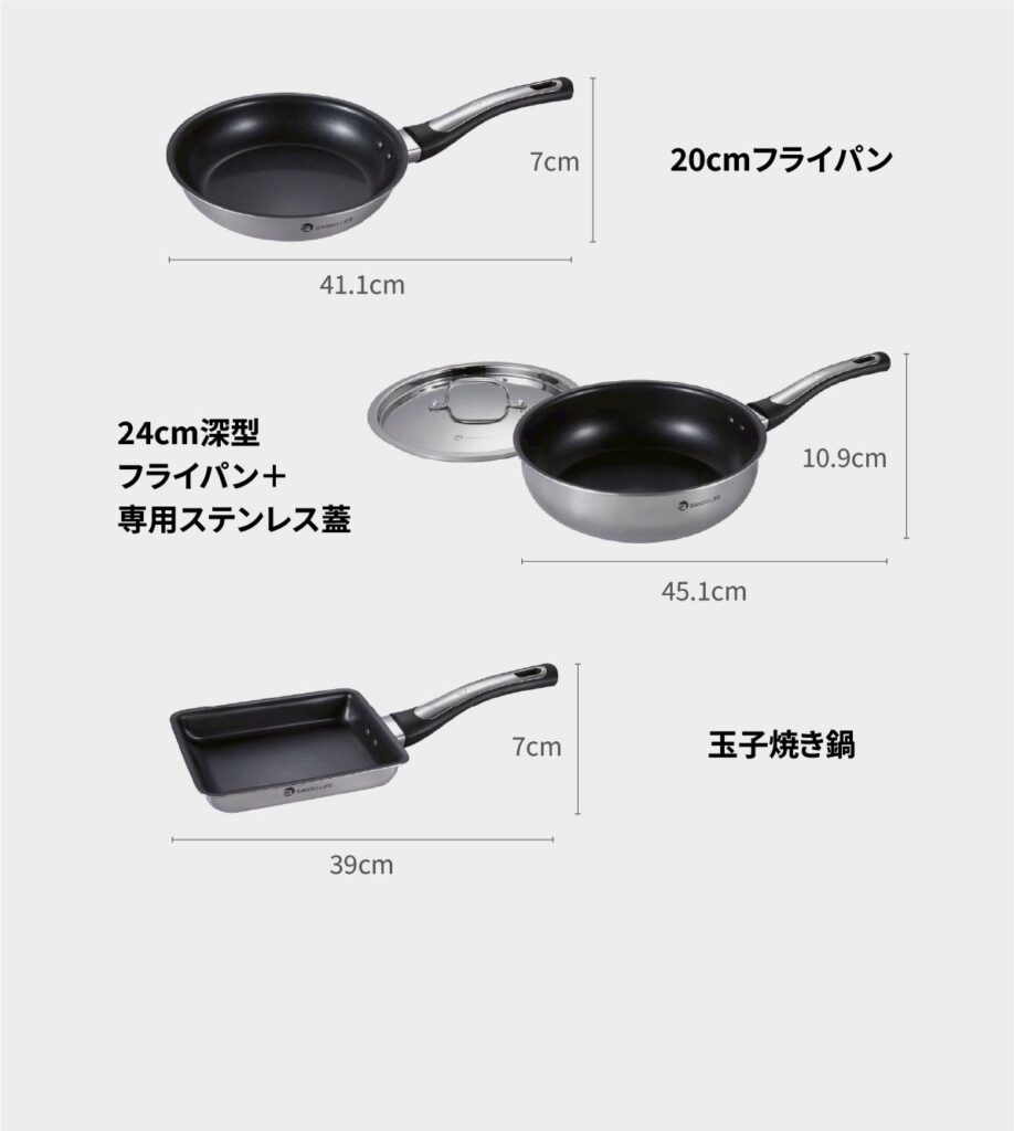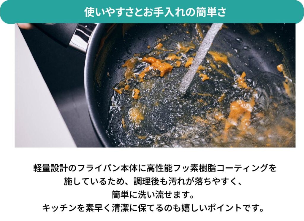 広めの底と深めのフライパン本体に専用のステンレス製ふたを組み合わせ、炒め用としても使用でき、無水調理やカレーを作るのにも最適です。