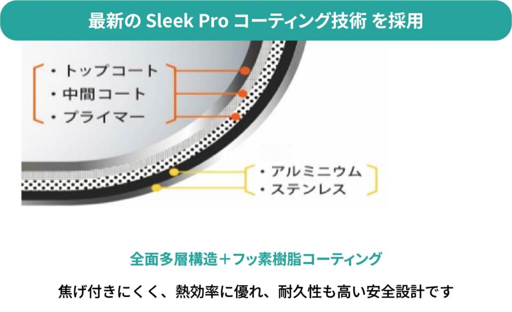 大きなフライパン本体で一度に多くの食材を入れることができ、料理時間の短縮にもつながります。多層構造設計により、優れた熱伝導性を持ち、素早く水分を蒸発させます。