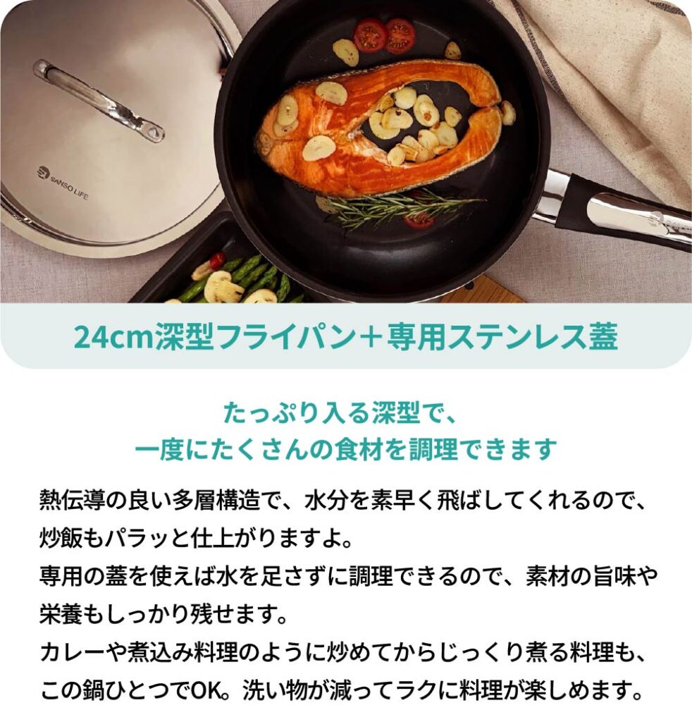 SANSO LIFE ステンレス製ノンスティック深型フライパン24cmは、まさに最適な選択です!