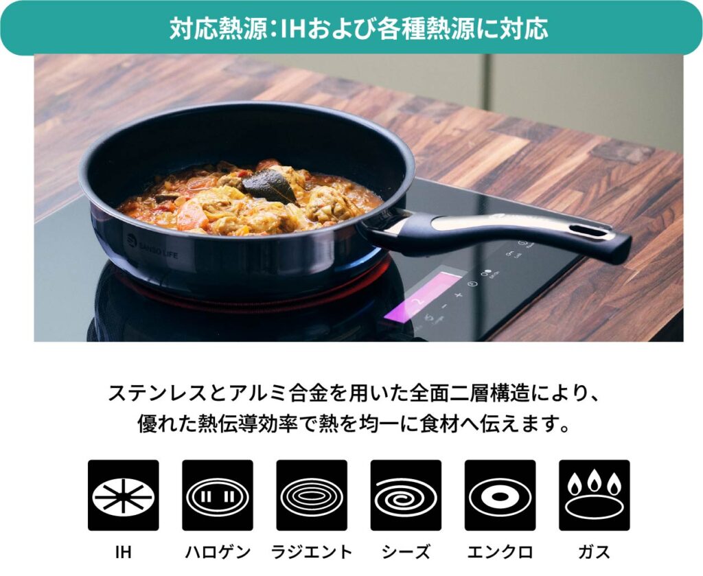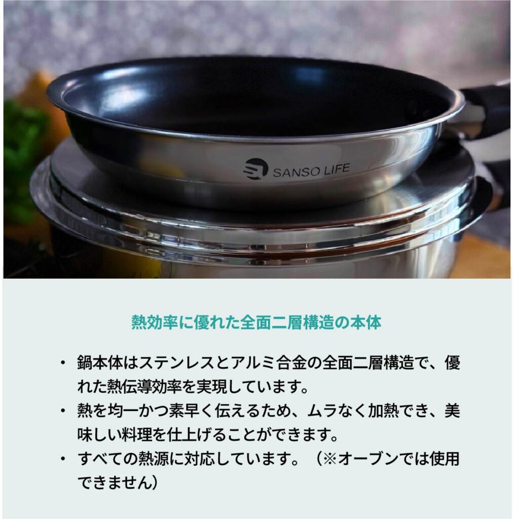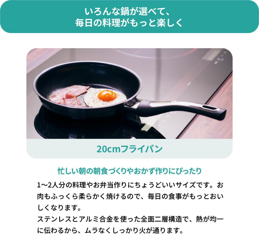 20cmサイズのフライパンは、一人暮らしや少人数のご家庭にちょうどいい使いやすさで、毎日の料理に大活躍します。